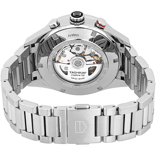 Dentro de la caja se encuentra el clásico movimiento cronógrafo automático basado en 7750, en este caso, que muestra la fecha y no la fecha del día, como otros modelos. El Carrera Calibre 16 está disponible, para cada versión de esfera, en una correa de cuero perforada con cierre desplegable o en un brazalete de acero pulido y cepillado de 3 eslabones.